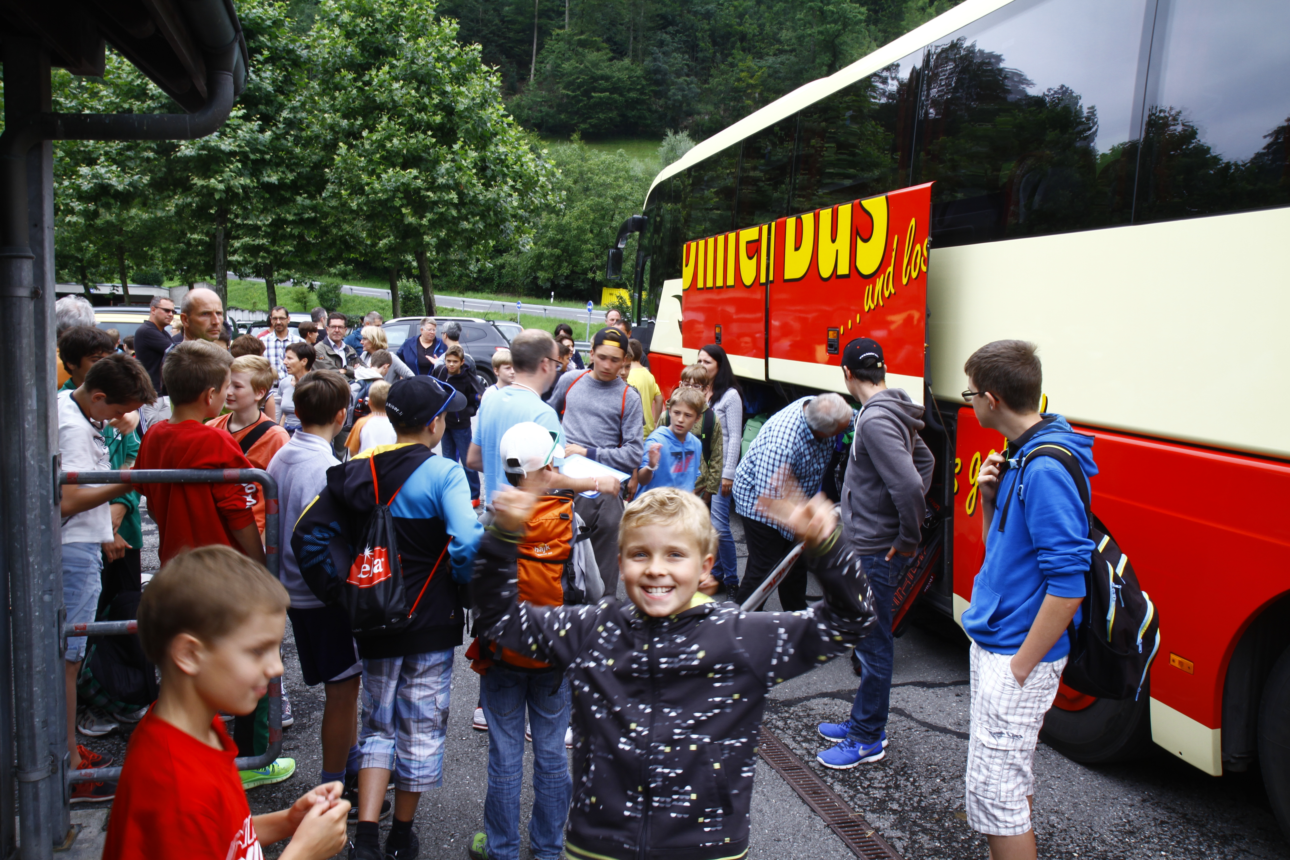 Langsam aber sicher nähern wir dem Ende des Lagers. Heute zeigte sich uns das Obergoms von seiner schönsten Seite. Bei herrlichem Wetter konnten wir unsere Lagerfoto knipsen und anschliessend den Baggersee bei Ulrichen aufsuchen. Während dem einige Teilnehmer mit den Inlineskates zum See fuhren, genossen andere Kids den Komfort des Busses. Obwohl der See sehr kalt war, genossen viele Kinder diese willkommene Abkühlung. Am Abend fanden nochmals Trainings statt, wobei dem Verlierer vom U16-Team eine besondere Strafe blühte. Sie mussten wenig gekleidet auf dem Bus oben die Schweizer Nationalhymne singen. Welch ein Spass!