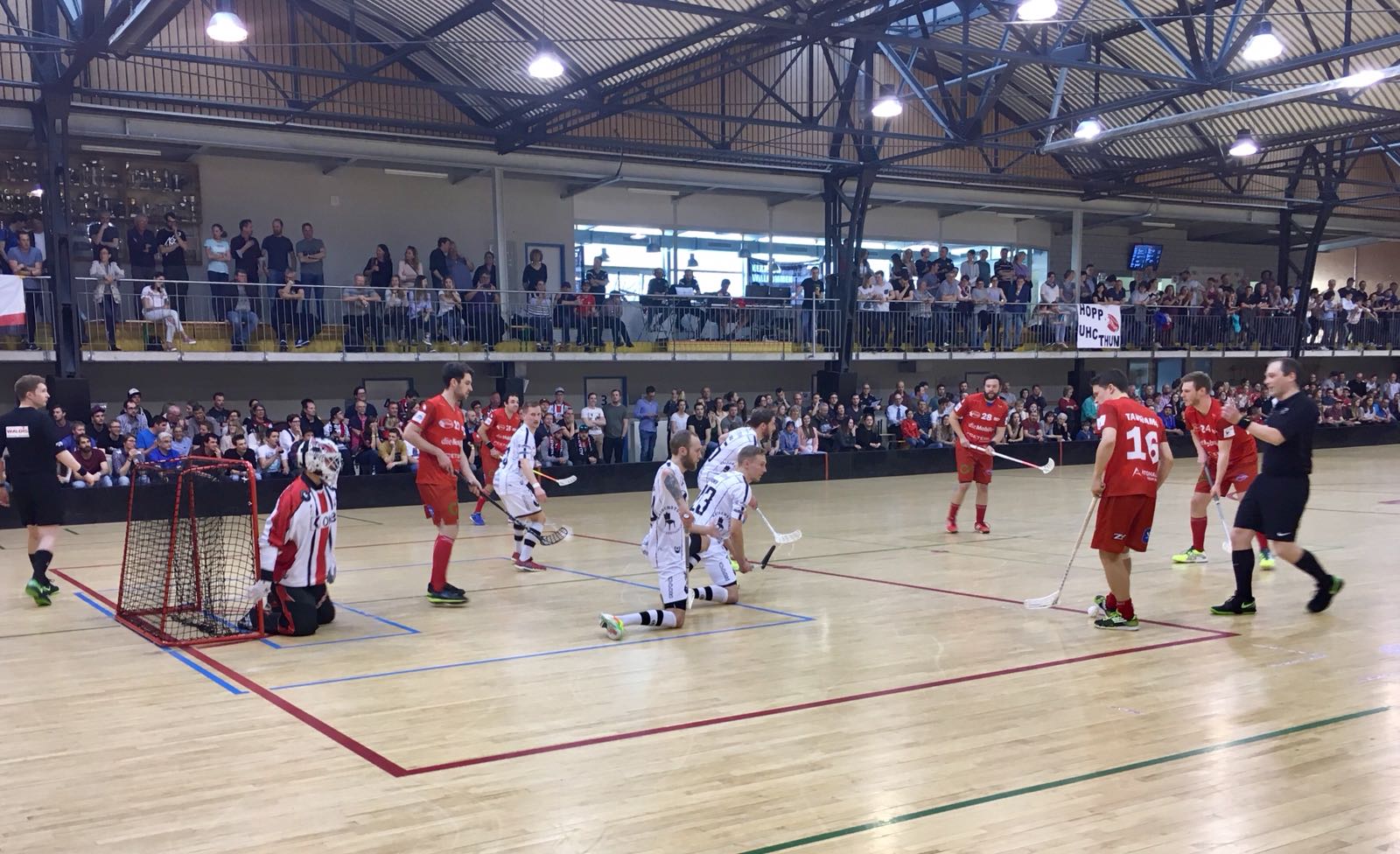 Nach 51. Minuten konnte die Partie wieder von vorne beginnen: Ad Astra traf zum dritten Mal innert etwas mehr als fünf Minuten und erkämpfte sich den 4:4-Ausgleich. Das berühmte Momentum schien nach Eronens Tor definitiv auf die Seite der Sarner zu kippen. Die Stimmung in der Halle war auf dem Höhepunkt, beide Fanlager versuchten ihre Teams zum Sieg zu peitschen. In der Folge drückten die Obwaldner auf die erstmalige Führung, ehe ein streng gepfiffener Penalty die Entscheidung zu Gunsten der Thuner brachte. Zurmühle hinderte den Thuner Frey nach Meinung der Schiedsrichter regelwidrig am Abschluss, den fälligen Strafstoss verwandelte Thuns Topskorer Kropf sicher. Trotz vollem Risiko und mit sechstem Feldspieler fiel der Ausgleich nicht mehr, womit die Thuner den dritten Sieg in der Serie bejubeln konnten.