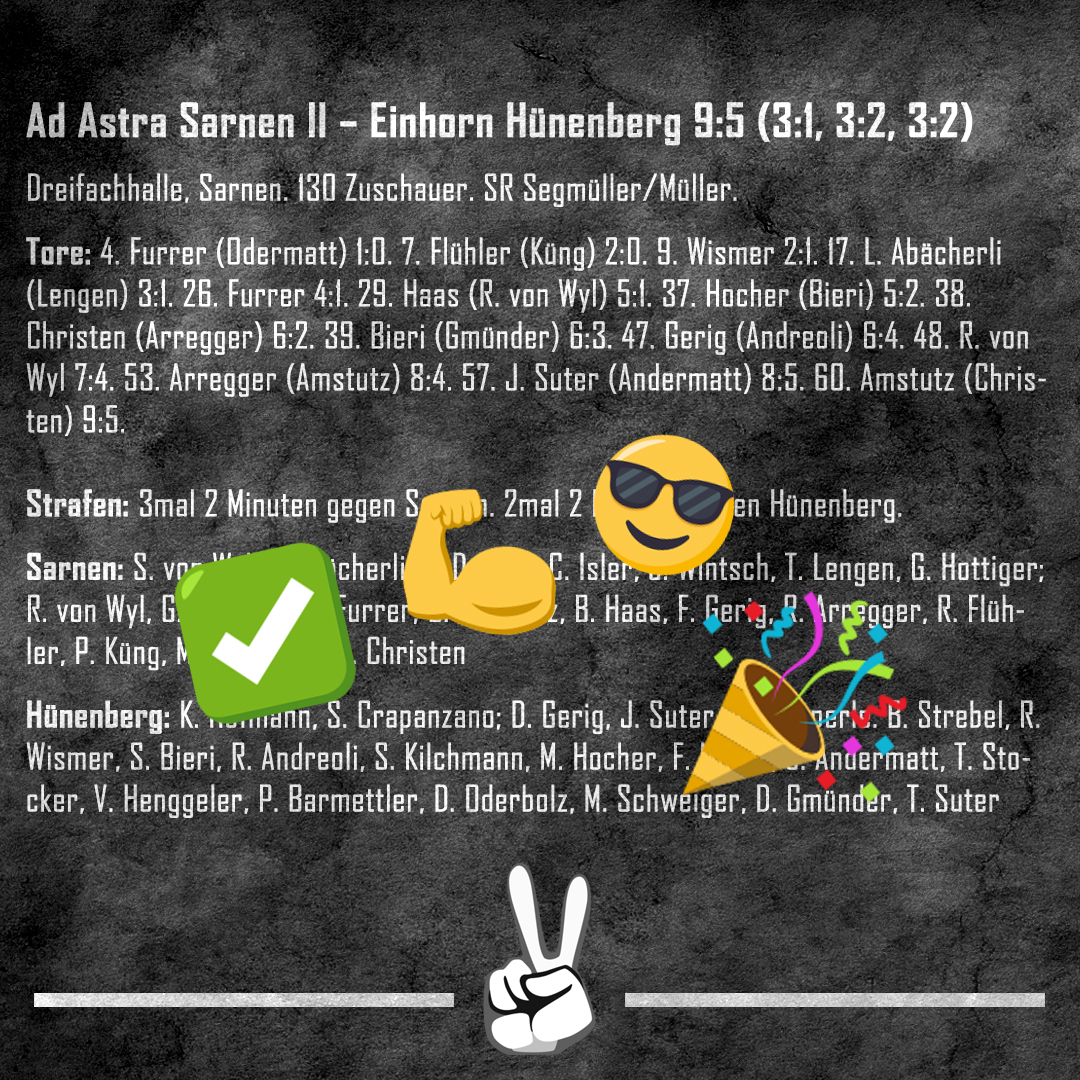 Ad Astra Sarnen II – Einhorn Hünenberg 9:5 (3:1, 3:2, 3:2)