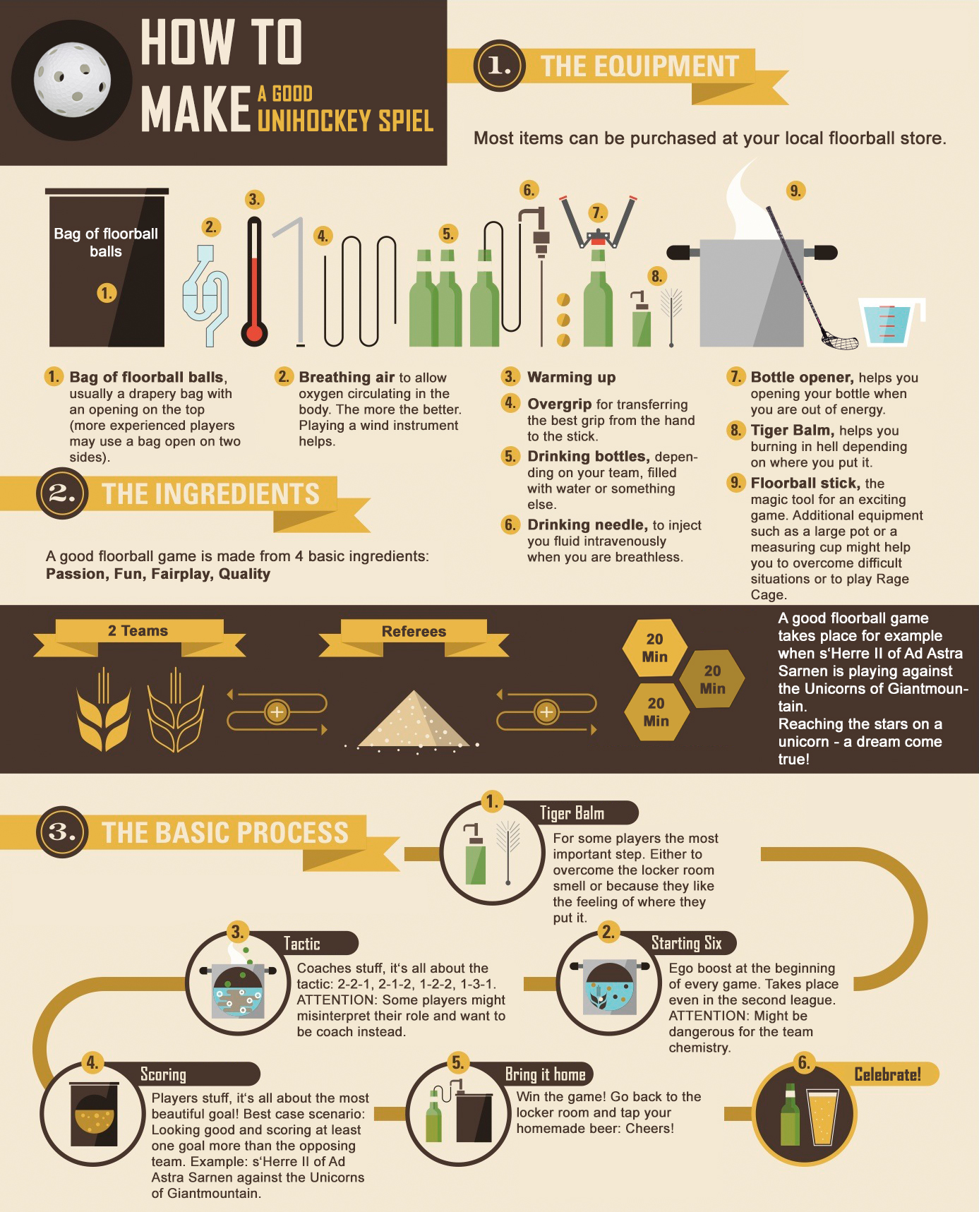 Three points go to… SARNEN! 🎉 Victory against UHC Einhorn Hünenberg aka the Unicorns 🦄 of Giantmountain 🏔! A big THANK YOU to our coach, because of whom we now can brew our own beer🍺! That’s why we proudly present you „How to make a good Bee… ehhhh Unihockey Spiel“!
