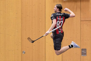 Der Jubelschrei des Torschützen zeigte auf, wie wichtig dieser Treffer war. Hannes Karlsson, der Spieler des Abends in den Reihen von Ad Astra Obwalden, tankte sich sieben Minuten vor der Schluss-Sirene durch die gegnerischen Reihen und versenkte den Ball unter der Latte in den Maschen. Der Treffer zum 9:8 markierte die erstmalige Führung für das Heimteam an diesem Abend. Und es sollte gleichzeitig der letzte Treffer der Partie sein. Die Obwaldner brachten die Führung über die Zeit, auch wenn der Gegner aus Kloten nochmals alles versuchte und mit sechs Feldspielern auf den Ausgleich drückte. Die drei Punkte blieben schlussendlich in Sarnen. Entsprechend gross war der Jubel im Absenzen-geschwächten Heimteam.